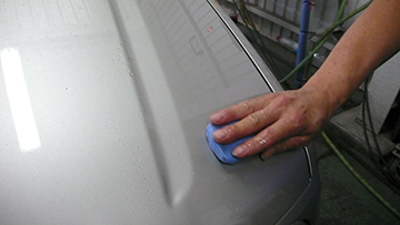 洗車をして、鉄粉とかペンキとかのざらつきを落とすために、